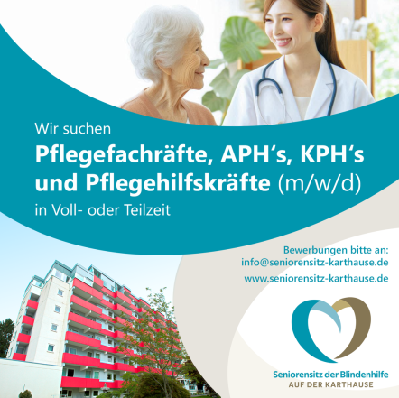 Bildbeschreibung: Stellenanzeige für Pflegefachkräfte, Altenpflegehelfer, Krankenpflegehelfer und Pflegehilfskräfte (m/w/d). Bewerbung gerne über den hellgrünen Button unten links auf dieser Seite.